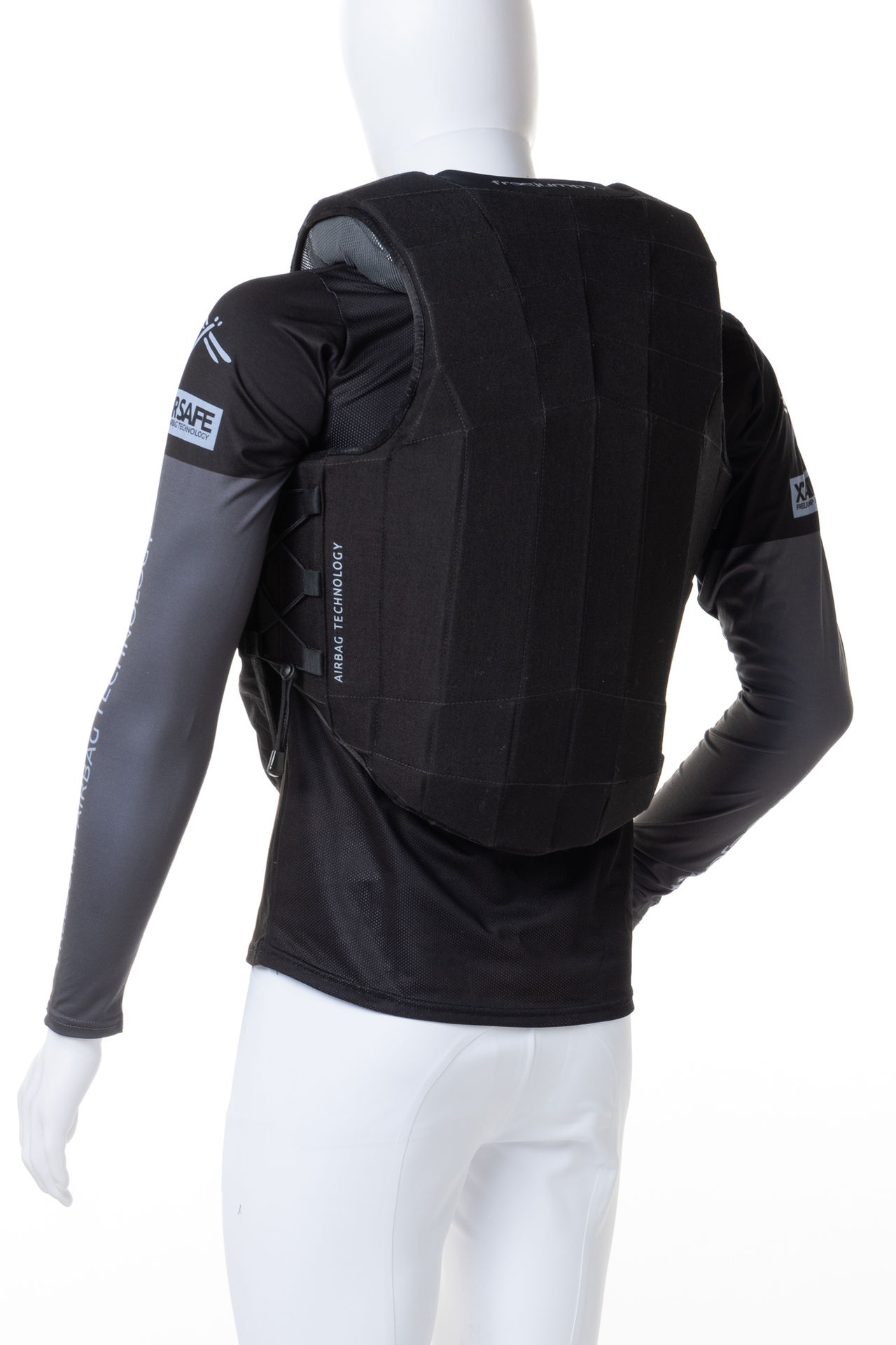 O airbag X'AIR SAFE será utilizável em competição, atendendo a 2 normas de segurança: a norma NF S72 800 2022 do colete airbag clássico, e a norma EN 13 158: 2018 nível 3 das proteções corporais de Eventing para uso em competição.